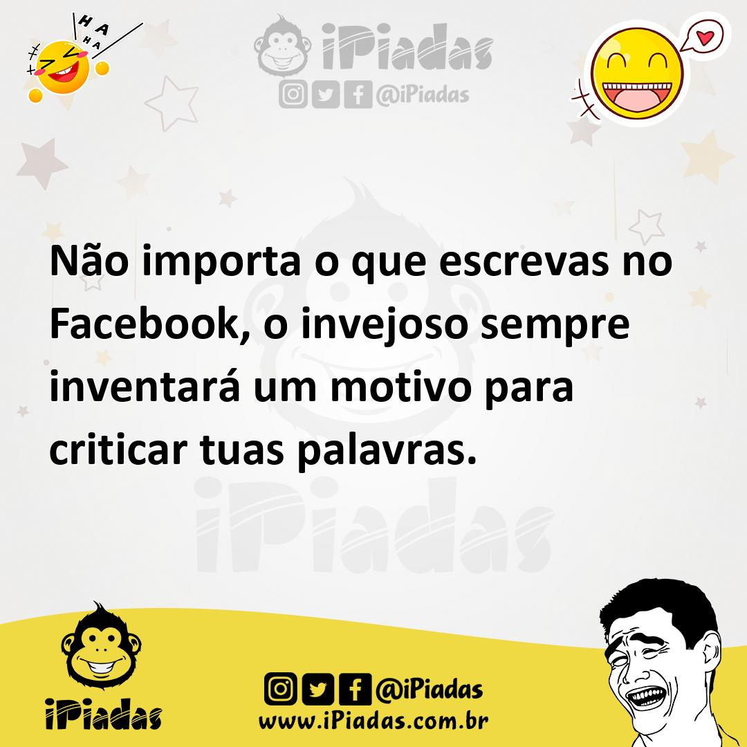 Não importa o que escrevas no Facebook, o invejoso sempre inventará um motivo para criticar tuas palavras. Compartilhe
