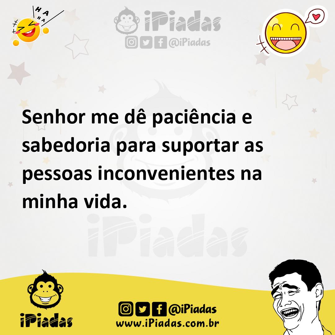 Senhor me dê paciência e sabedoria para suportar as pessoas inconvenientes na minha vida. Compartilhe